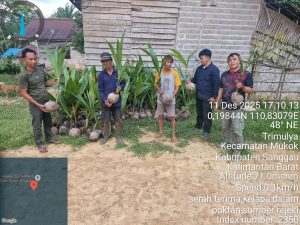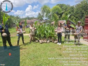 Dengan luas 100 Hektar ini, bantuan yang diterima terdiri dari 11.000 batang benih kelapa dalam siap tanam dan 33.000 Kg pupuk organik yang tersalurkan kepada Poktan/Gapoktan penerima bantuan. Bantuan ini merupakan pokok pikiran dari Anggota DPR RI yang berasal dari Kabupaten Sanggau Bapak Paolus Hadi, S.IP., M.Si.