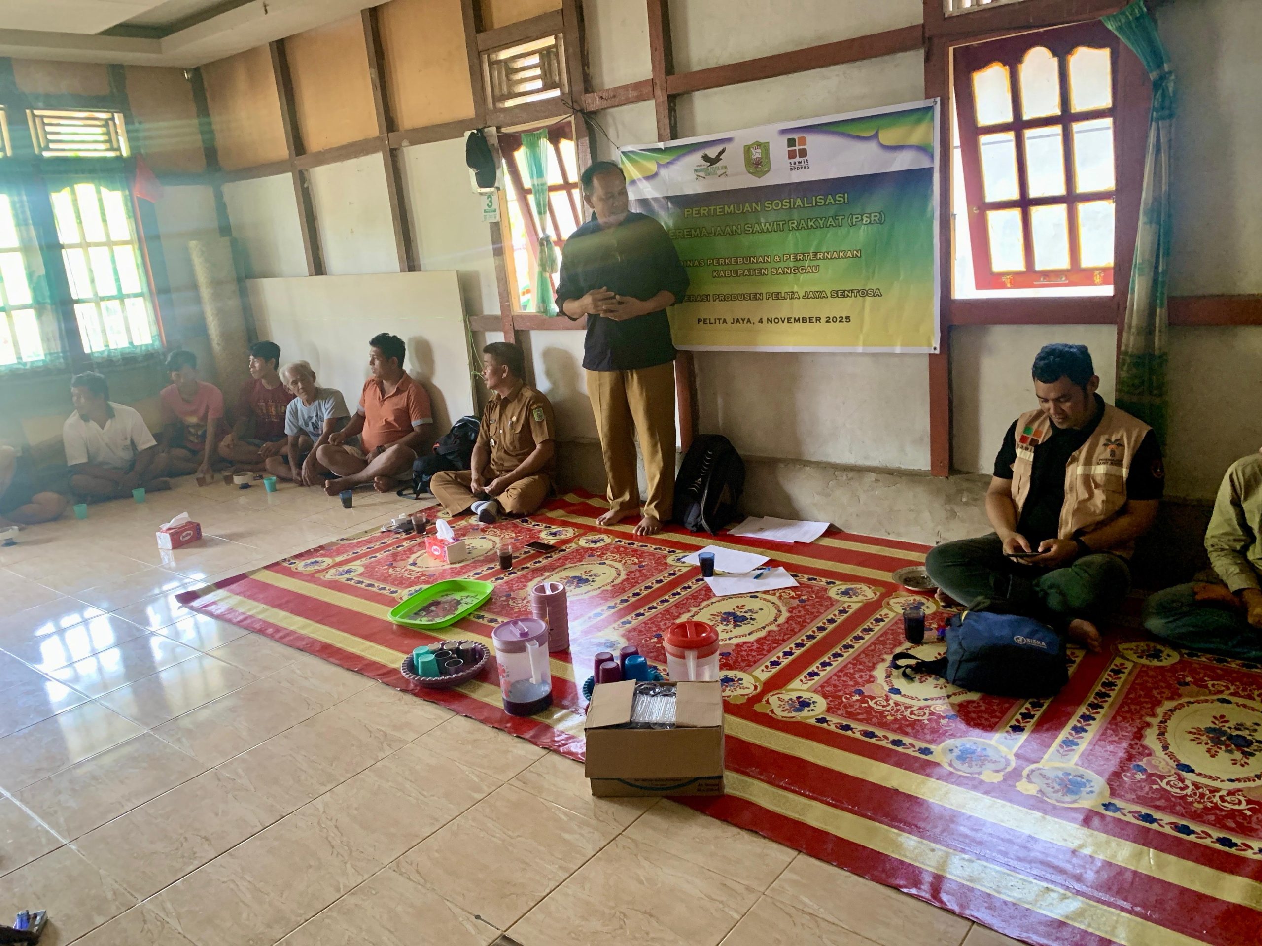 Sosialisasi ini dilaksanakan dirumah Firlandus, Ketua Koperasi Produsen Pelita Jaya Sentosa tepatnya di Desa Balai Tinggi, Kecamatan Meliau. Selasa, 4 November 2025. Program PSR adalah singkatan dariĀ Peremajaan Sawit Rakyat, sebuah program Pemerintah untuk membantu petani kelapa sawit mengganti tanaman yang sudah tua dengan bibit unggul agar produktivitas meningkat, ini merupakan Tahun ke-6 Dinas Perkebunan dan Peternakan telah mendukung Program PSR di Kabupaten Sanggau.